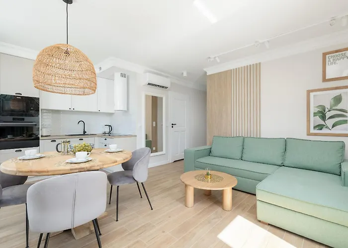 Apartmán Stylowy Apartament 400 M Od Plazy By Noclegi Renters nabízí kuchyňku i pokoje s přístrojem na přípravu kávy a čaje, místností na posezení, televizí. Miniatur- und Eisenbahnpark je vzdáleno 6 km, a Aleja Gwiazd Sportu w Dziwnowie je dosažitelné do vzdálenosti 4 km.
